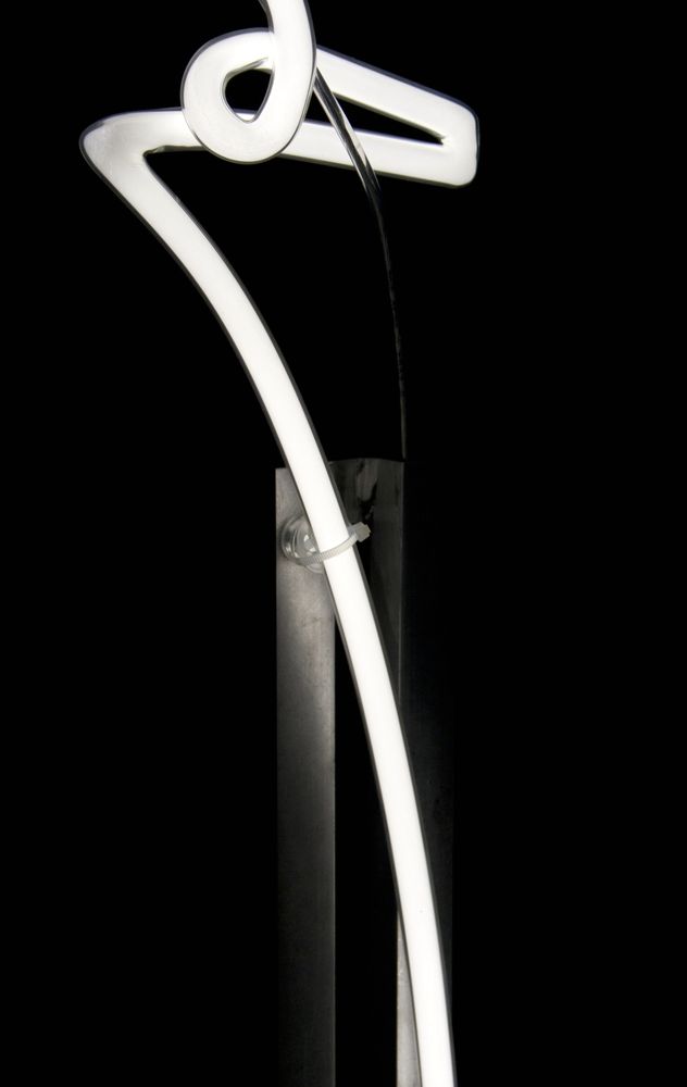 die folgenden fotos mit dem buchstaben „z“ zeigen ein 100cm hohes lichtobjekt mit einem sockel aus gebürstetem alu natur.